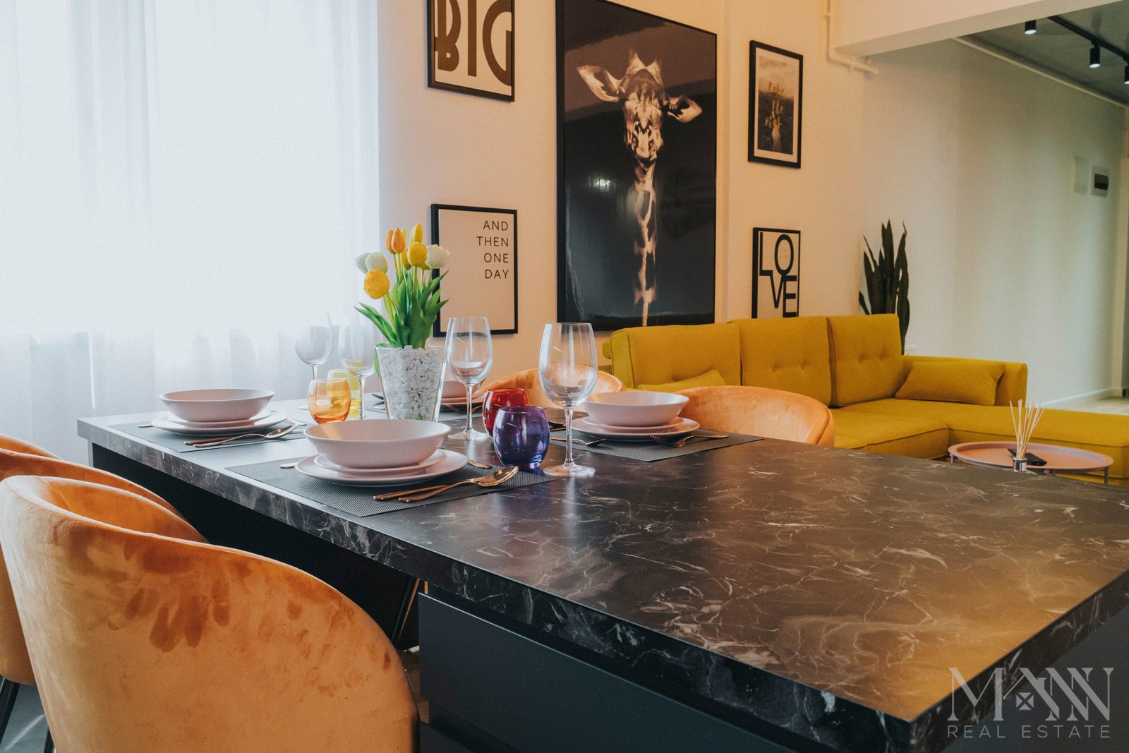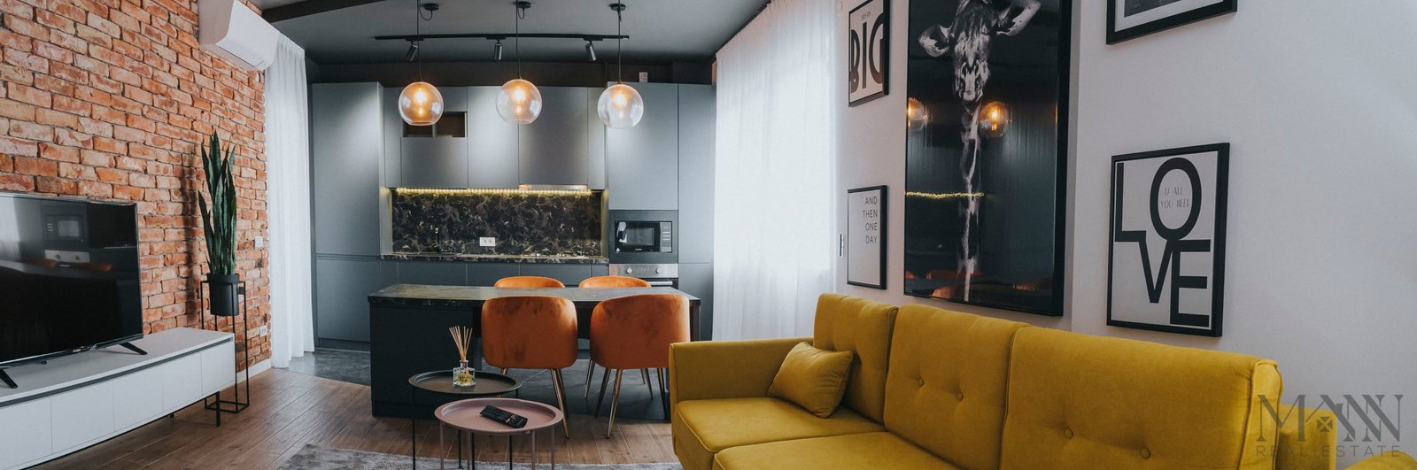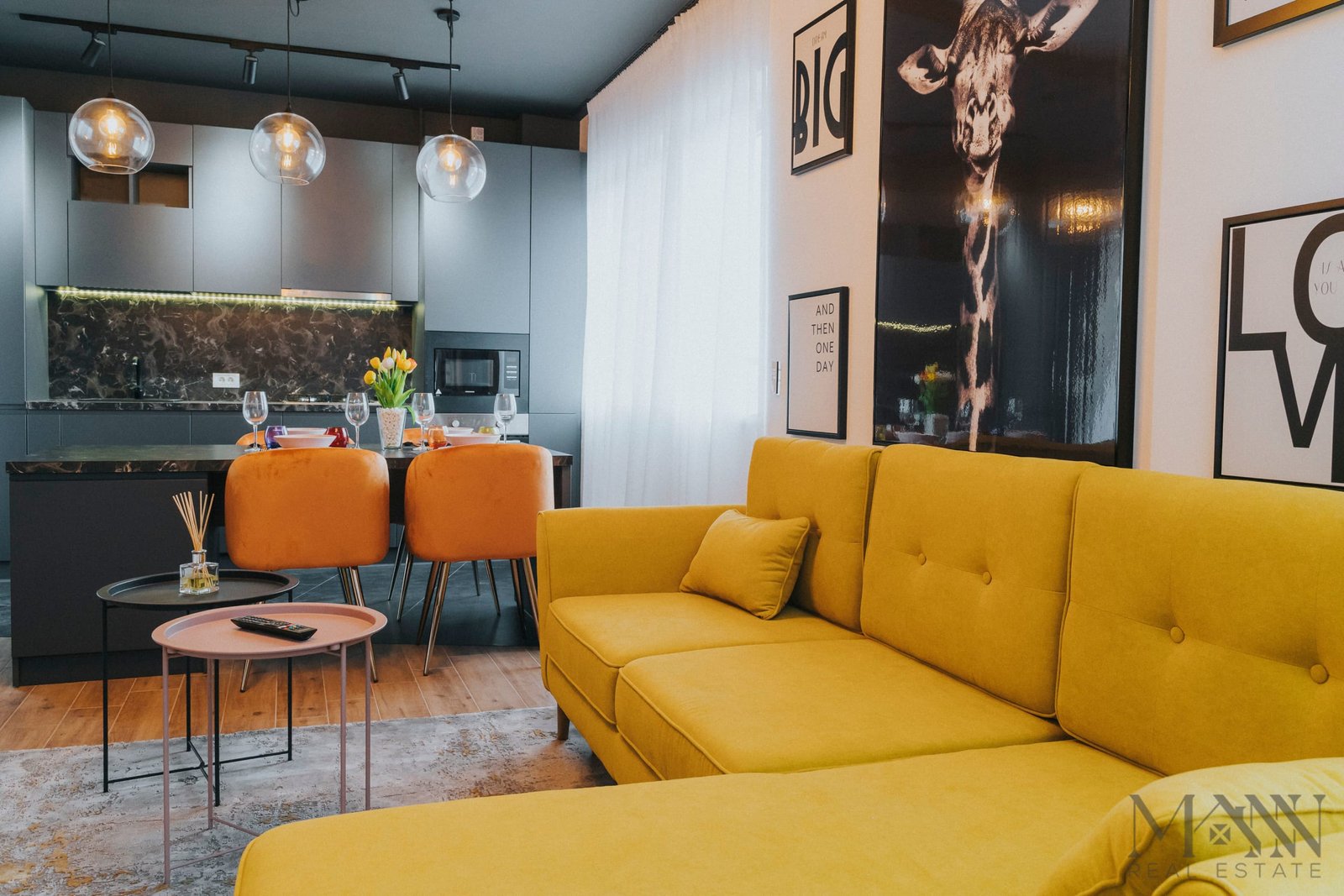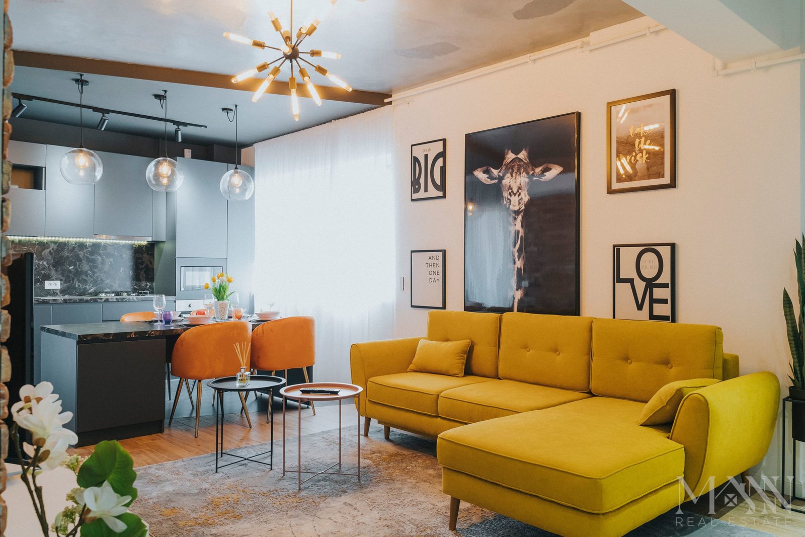 • Living open space cu bucătărie complet utilată și zonă de luat masa;