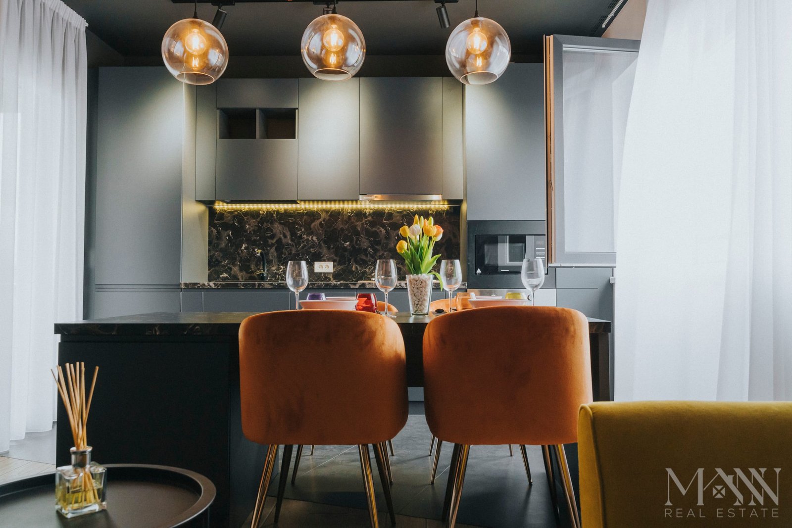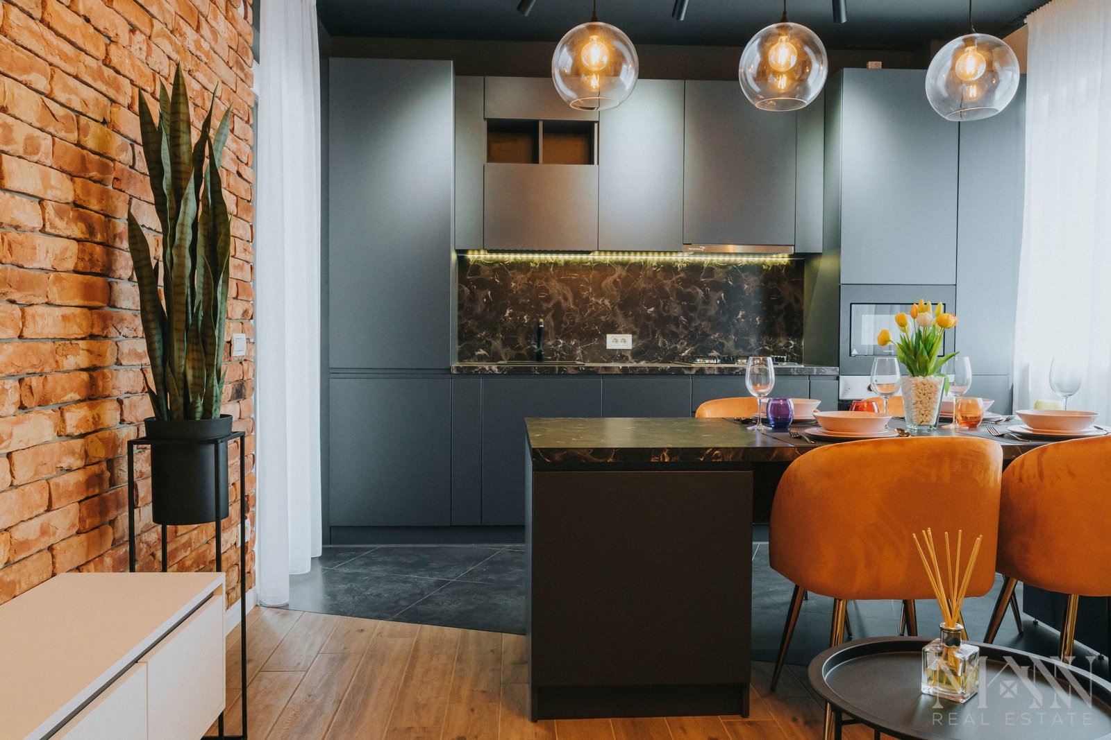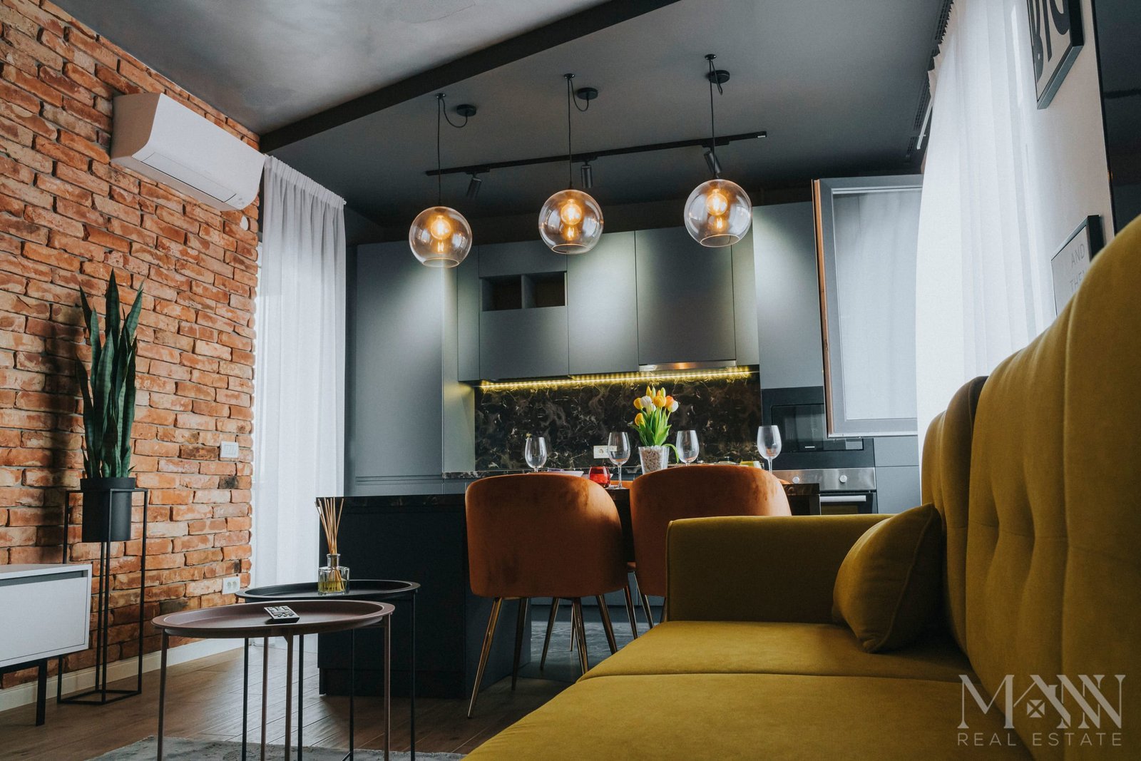 • Living open space cu bucătărie complet utilată și zonă de luat masa;