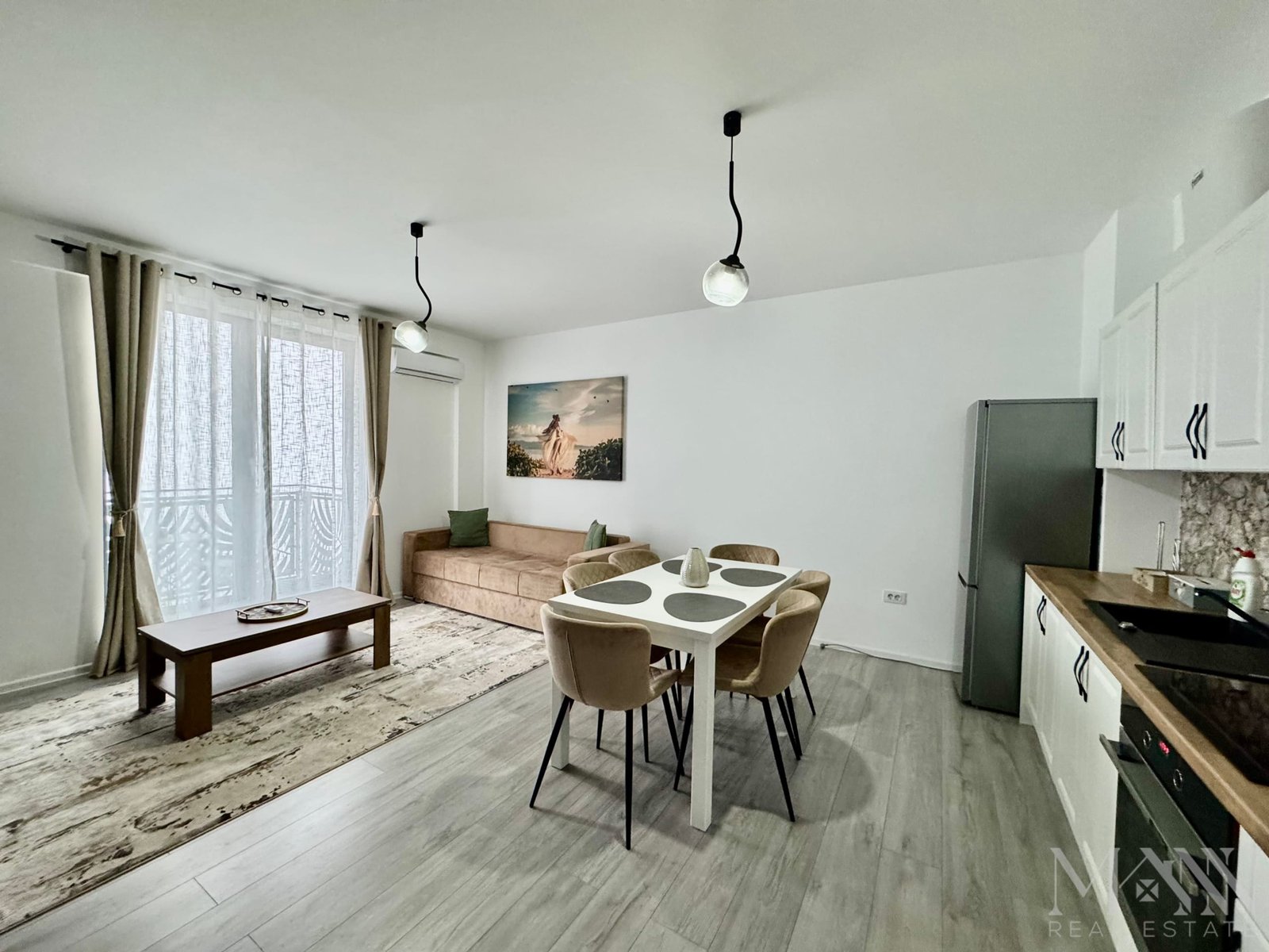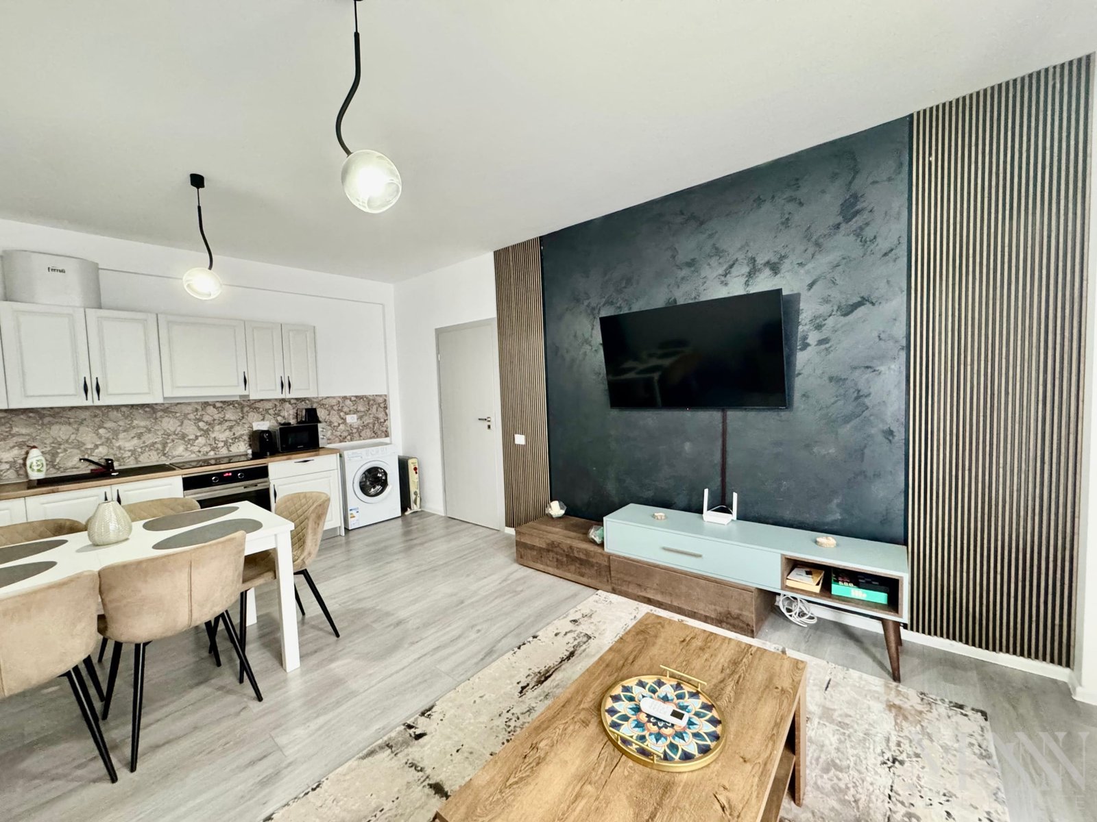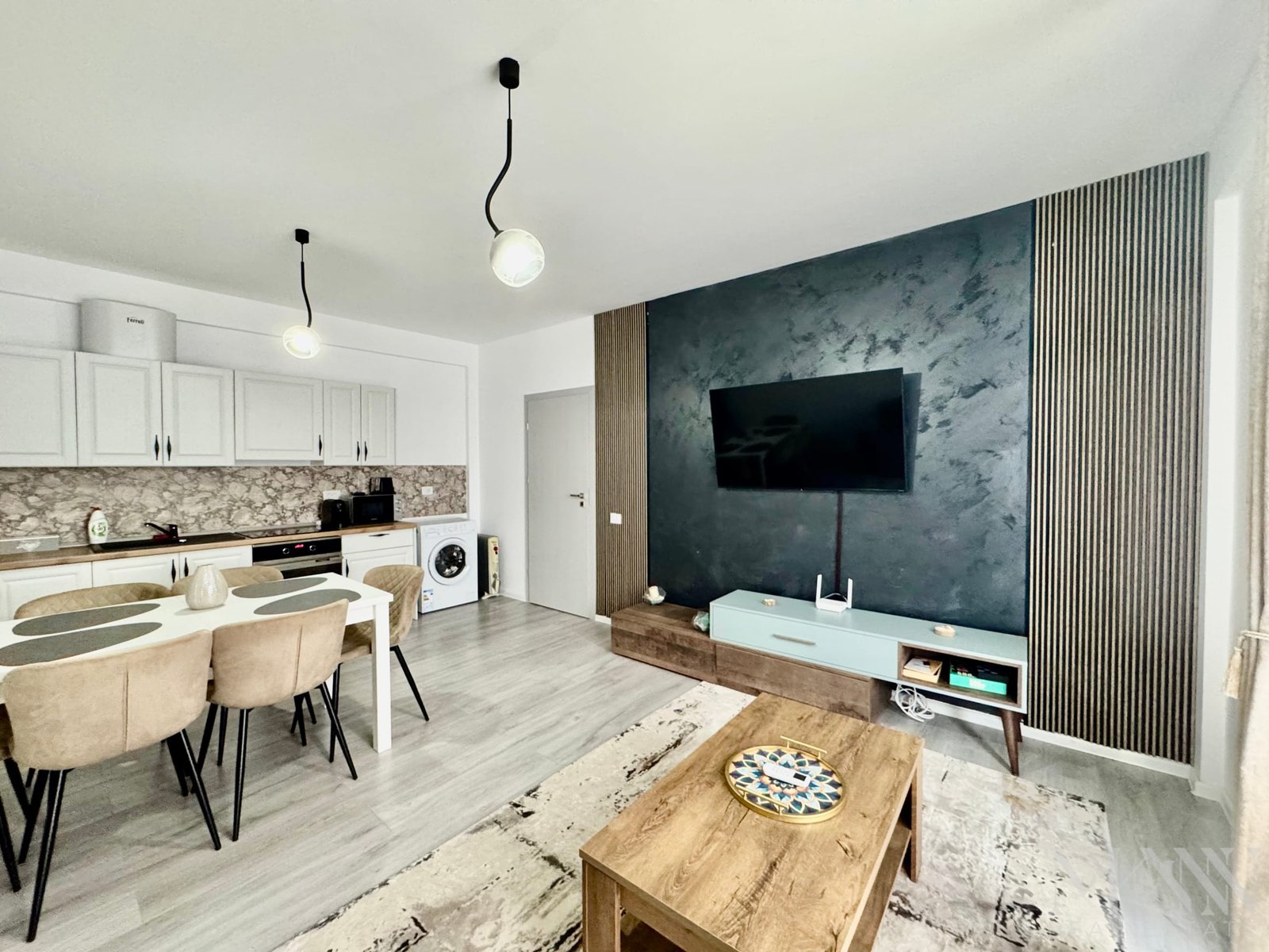 * Living open space luminos, cu bucătărie complet echipată;