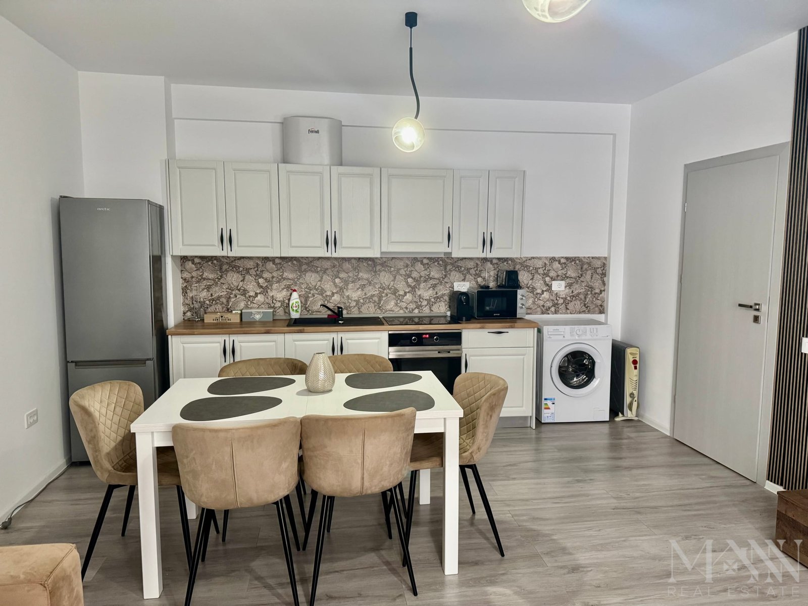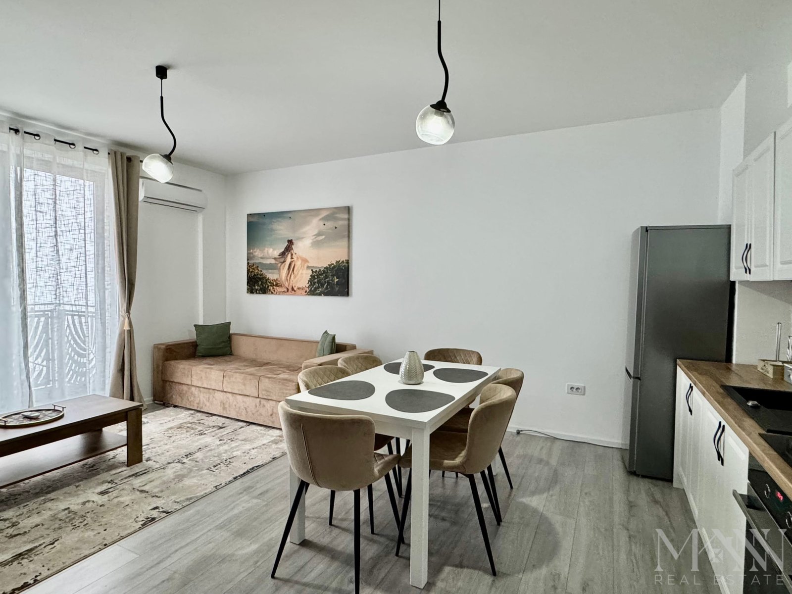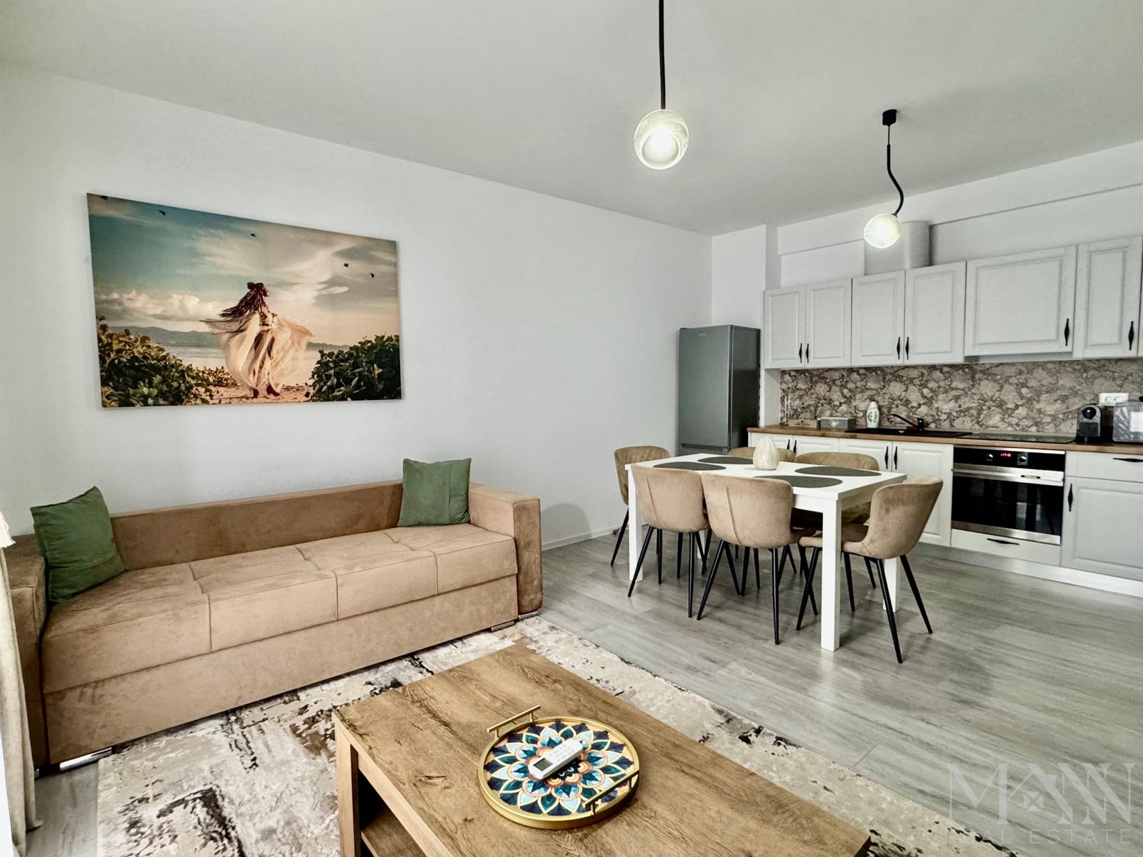 * Living open space luminos, cu bucătărie complet echipată;