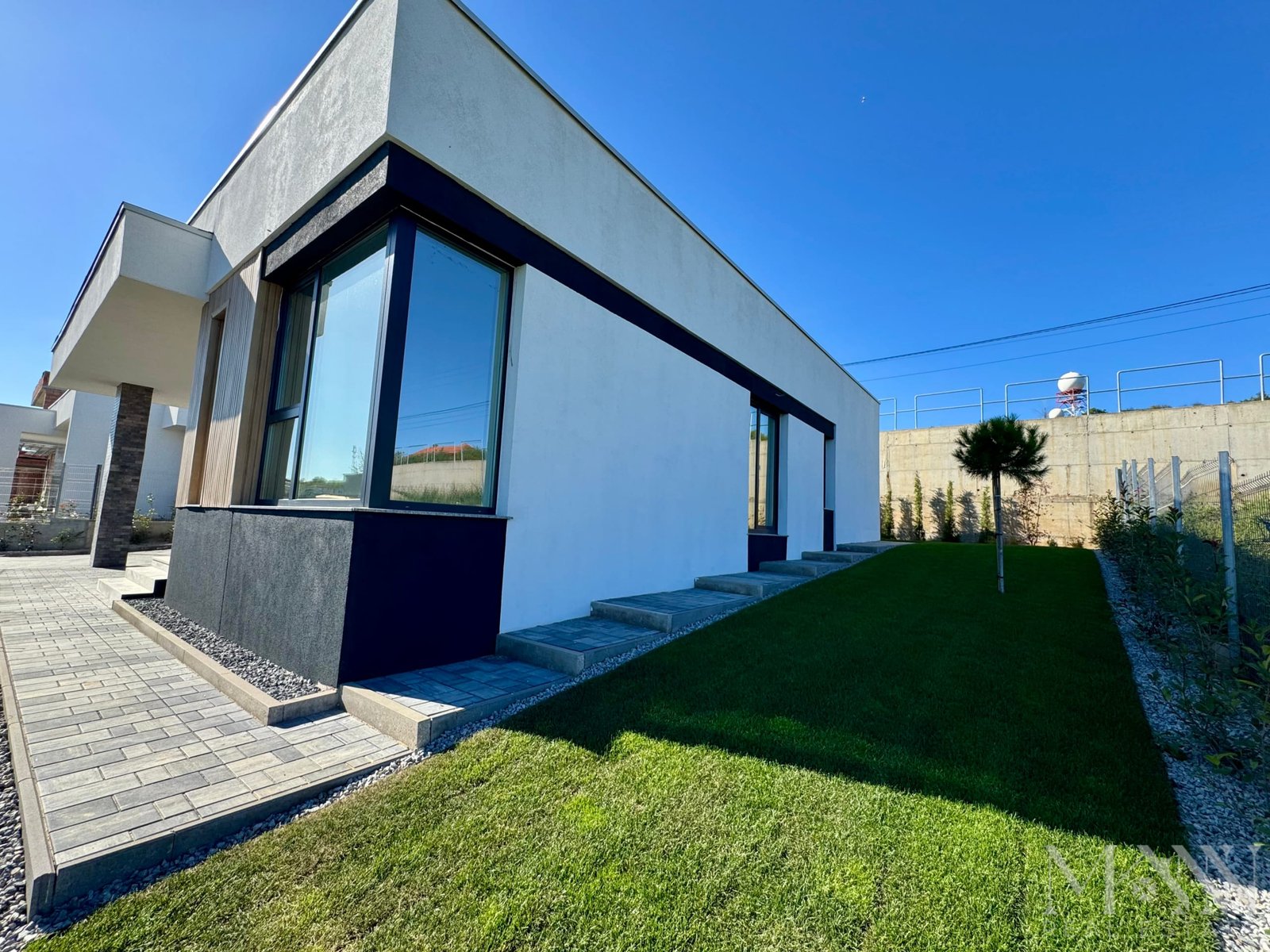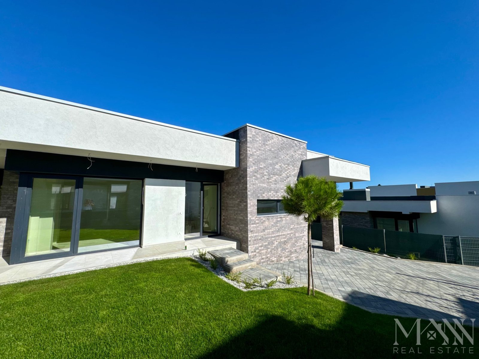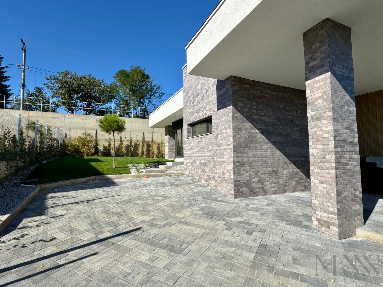 - Finisaje exterioare de inalta calitate: tencuială decorativă, placaje din piatră naturală și riflaje cu texturi ce imită lemnul, oferind un design unic și sofisticat.