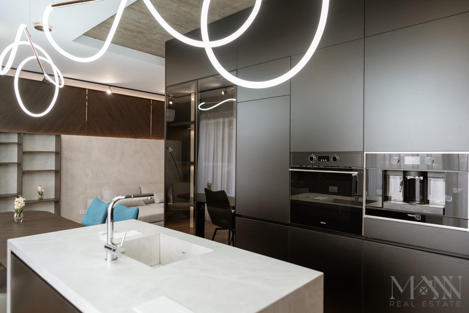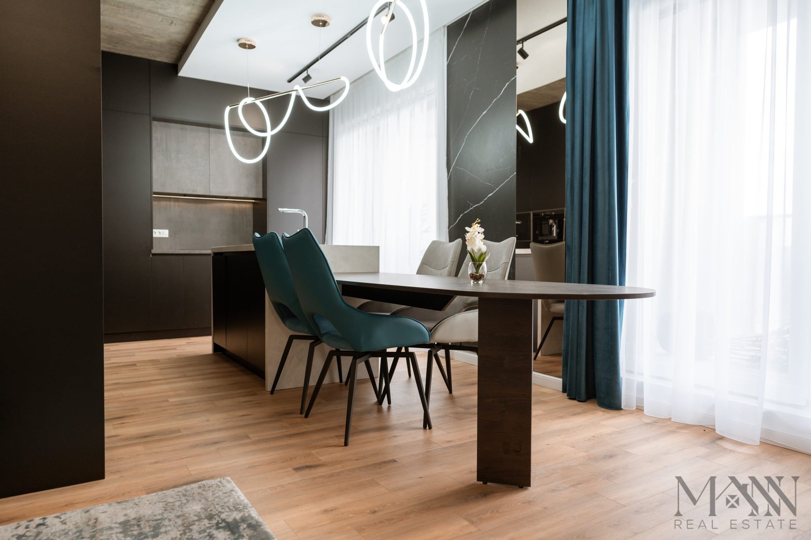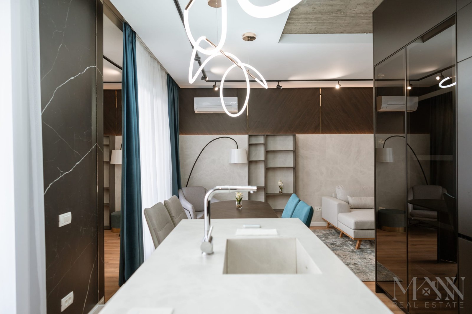 • Living spațios cu bucătărie open-space și zonă de dining, cu insulă centrală;
