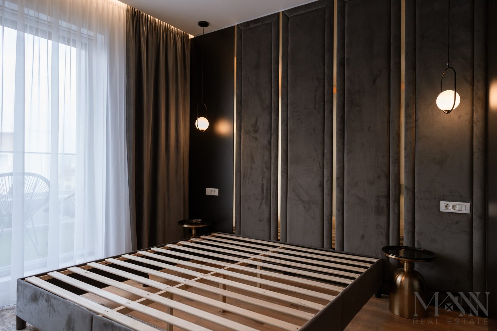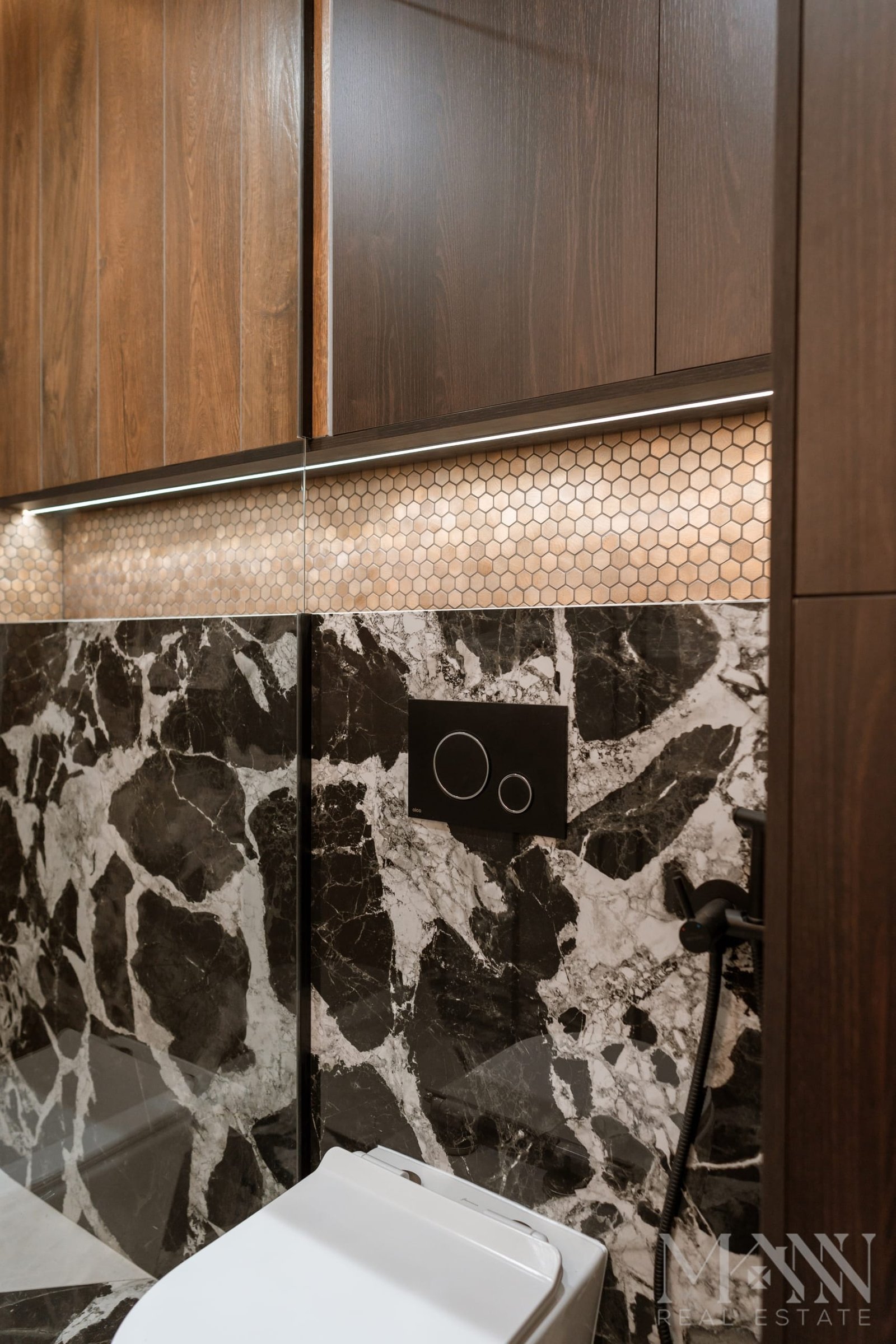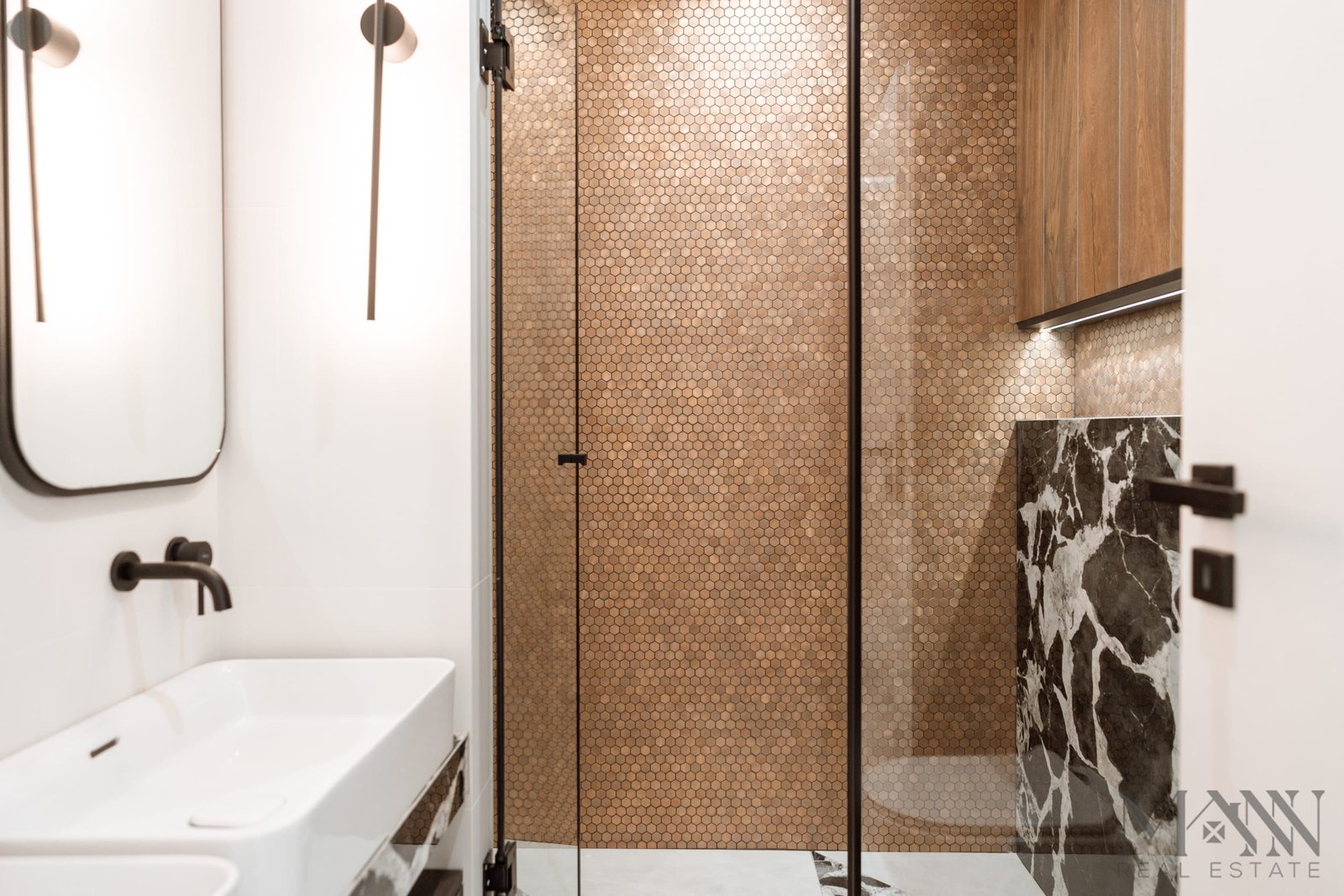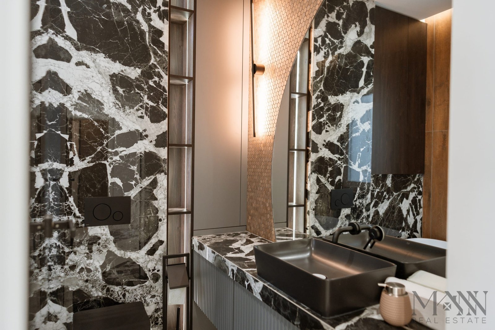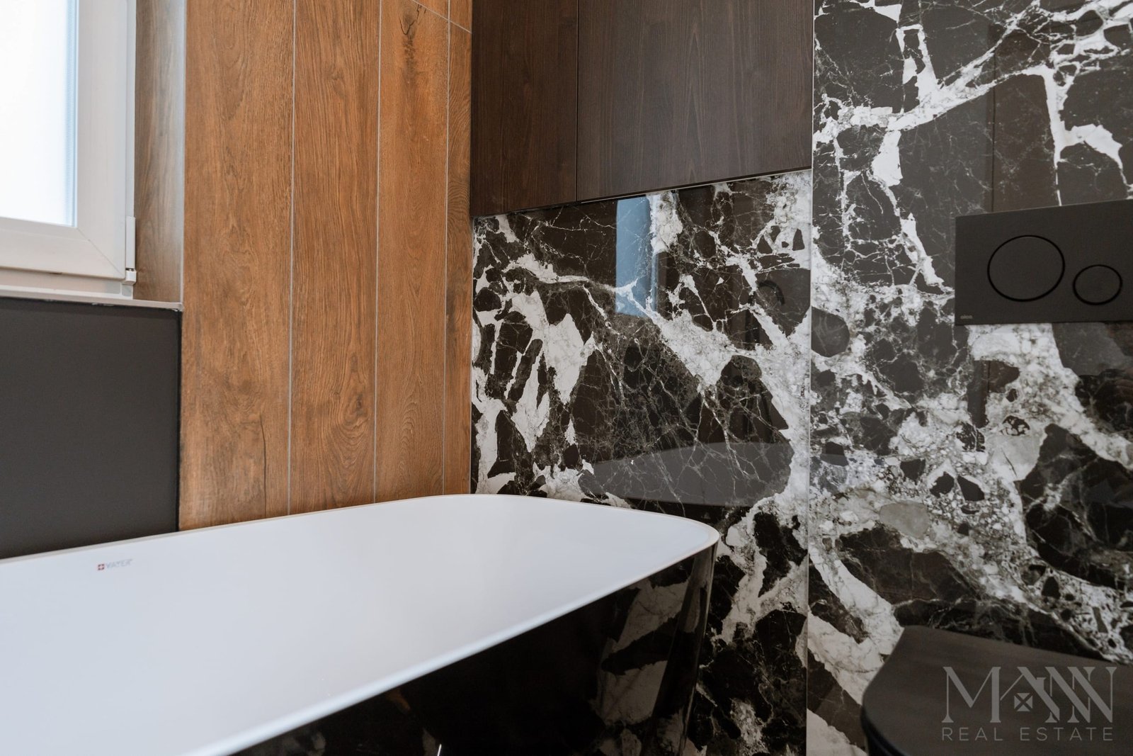 • 2 băi moderne (cadă + duș walk-in, dublu lavoar, finisaje premium).