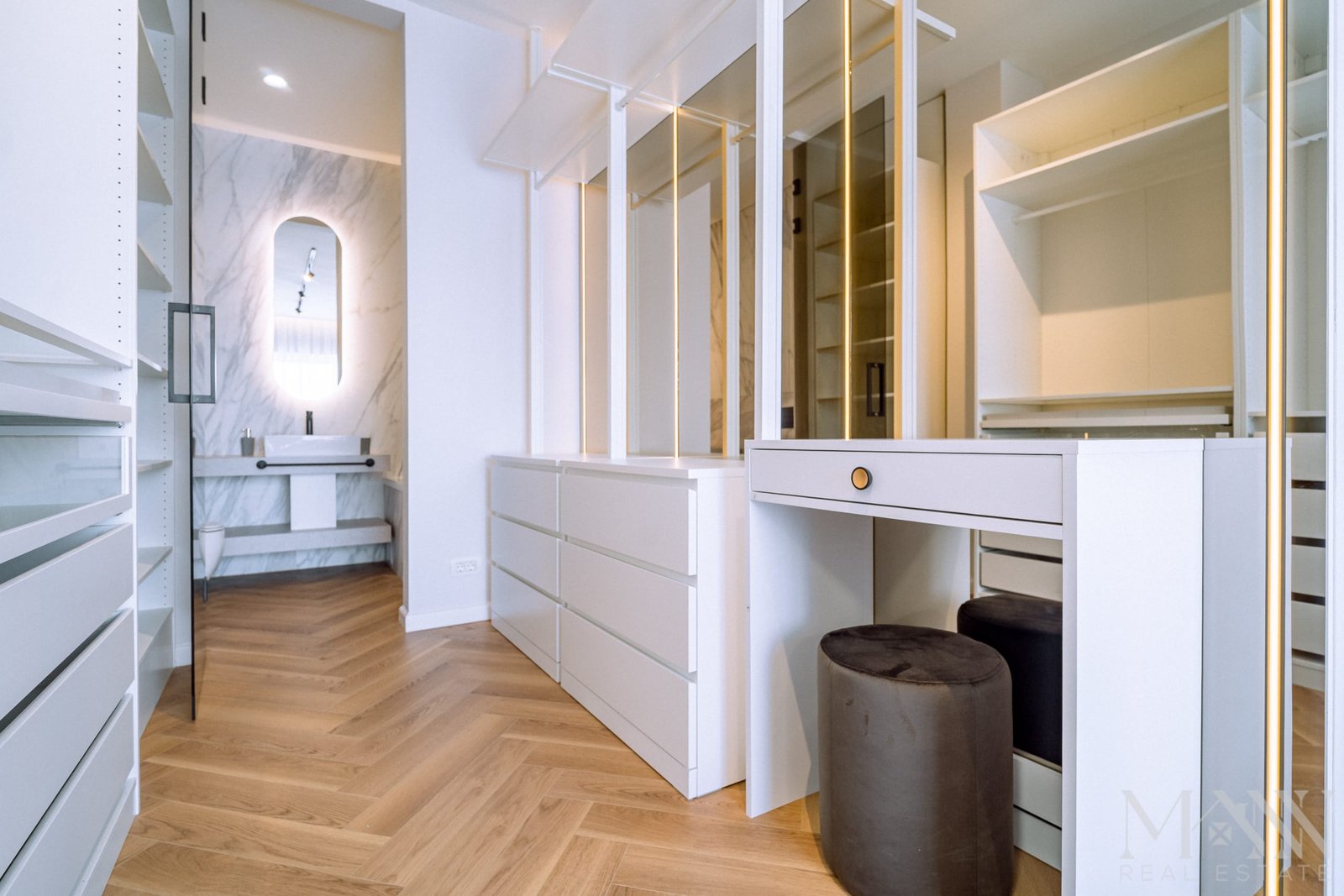 Tonuri neutre și calde, mobilier pe comandă, corpuri de iluminat premium și detalii atent alese conturează o atmosferă sofisticată și primitoare.